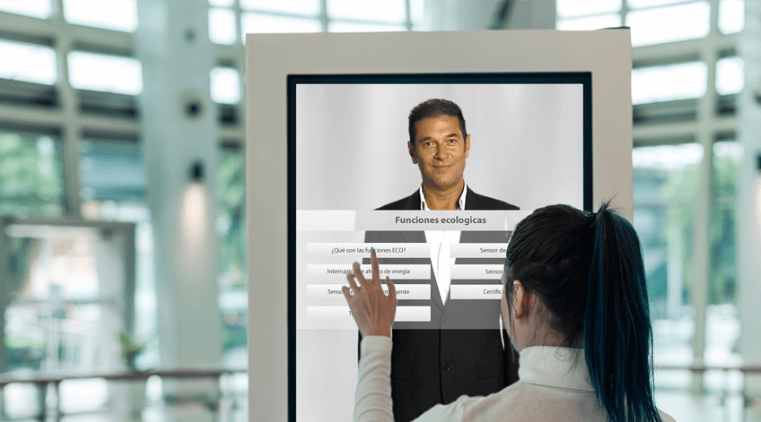 Este poyecto abarca desde la grabación en vídeo de las escenas de nuestro asistente, hasta la programación del tótem para su uso en pantalla táctil y por comandos de voz.