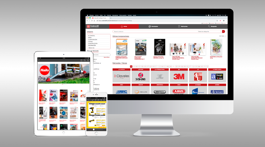 Cadena 88 catálogos proveedores es una aplicación para tablets, smartphones y ordenadores especialmente dirigida a fabricantes, distribuidores y profesionales de los sectores de la Ferretería, el Bricolaje y la Construcción que facilita la distribución y consulta de catálogos en formato digital.