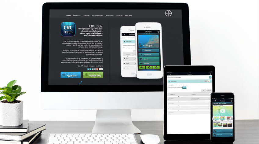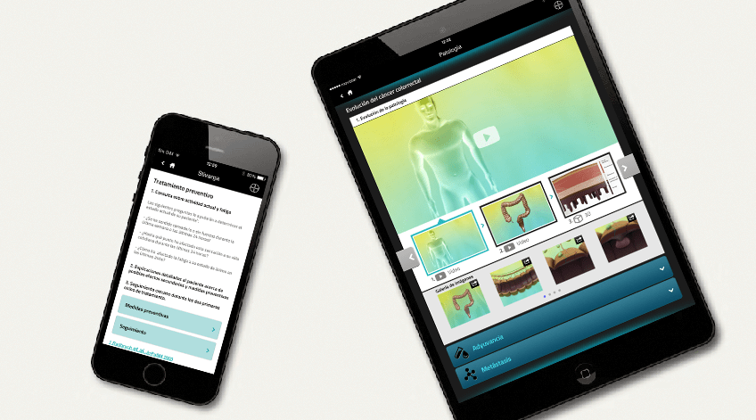 Bayer nos solicitó la programación de una aplicación específica para dispositivos móviles sobre cáncer colorrectal dirigida a profesionales médicos, para su uso en la consulta diaria del médico oncólogo.
