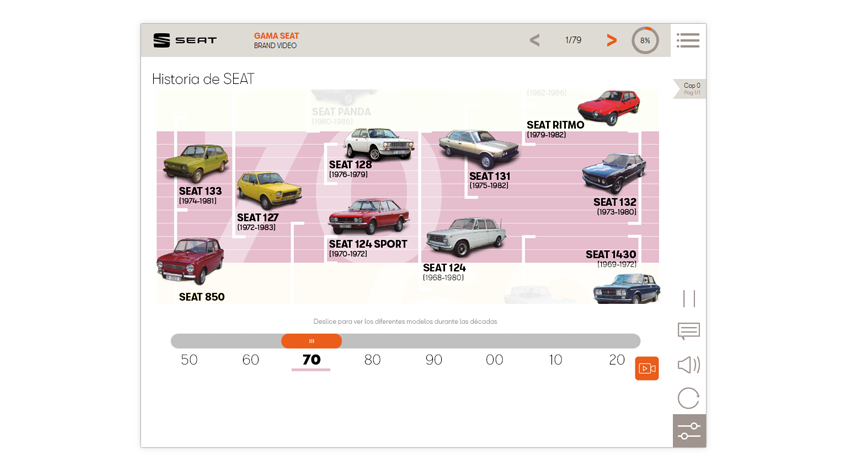 Un proyecto del que estamos muy orgullosos. Esta pieza de formación sirve para dar a conocer a los nuevos empleados de SEAT la gama de vehículos de la marca. Un reto para hacer un proyecto divulgativo, técnico y atractivo. Un proyecto en constante renovación que refleja el espíritu creativo e innovador de una gran marca, SEAT.