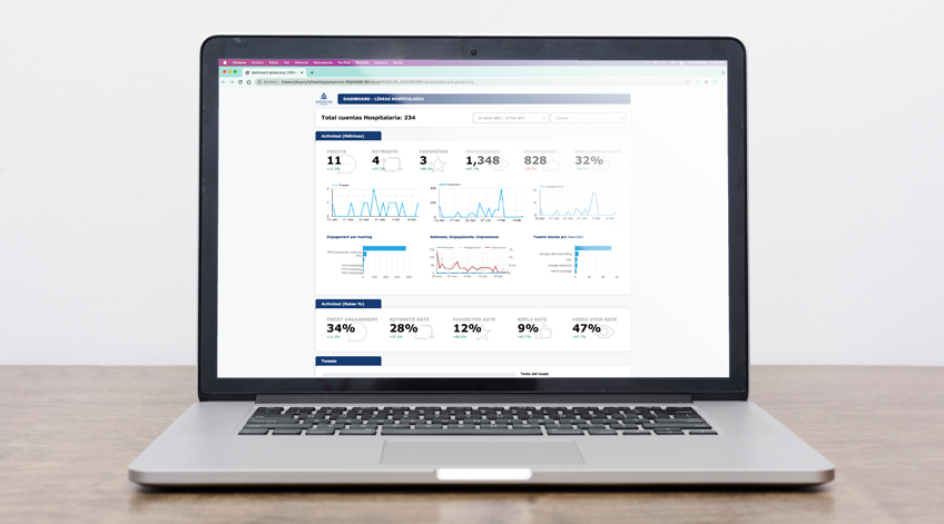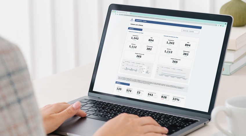 Con este Dashboard, Angelini puede analizar la actividad y el progreso de las intervenciones en Twitter de sus delegados. Este análisis le permite revisar las acciones comerciales en diferentes niveles y analizar los resultado para tenerlos en cuenta en la definición de futuras acciones.