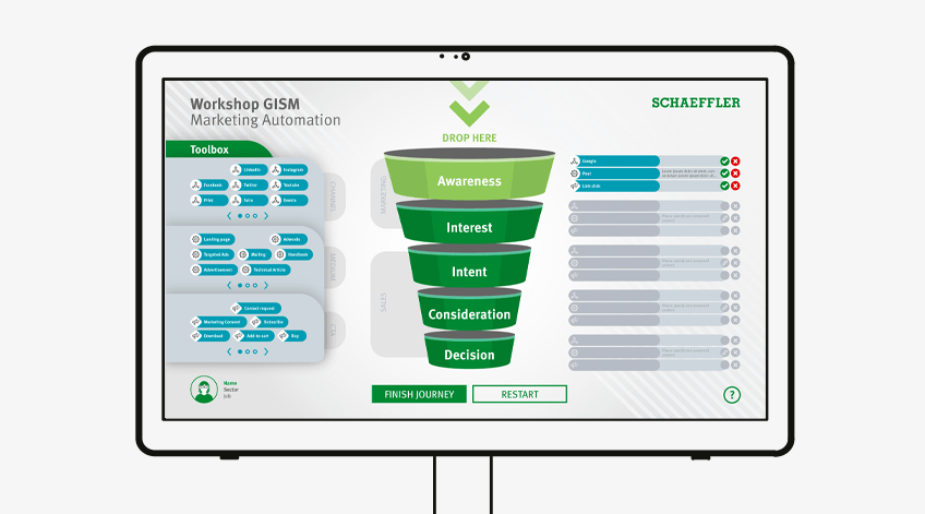 El departamento de Marketing de Schaeffler nos solicitó este interactivo para ser utilizado en la Reunión General de Ventas Internacional. Una herramienta donde poder aplicar los conocimientos sobre las nuevas técnicas de Marketing Automation que están aplicando en la gestión de cuentas.