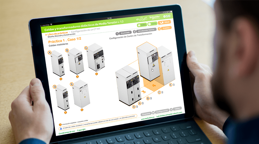 Aunque los medios más idóneos son los que se utilizan en la realidad, su disponibilidad, coste y dificultad de implantación hicieron que se considerase la posibilidad de utilizar una aplicación que permitise la realización de prácticas como alternativa. A partir de estas premisas, se definió una herramienta digital e interactiva que permite realizar simulaciones didácticas de prácticas de configuración, maniobra, mantenimiento y protección mediante representaciones de los transformadores y de las celdas modulares.