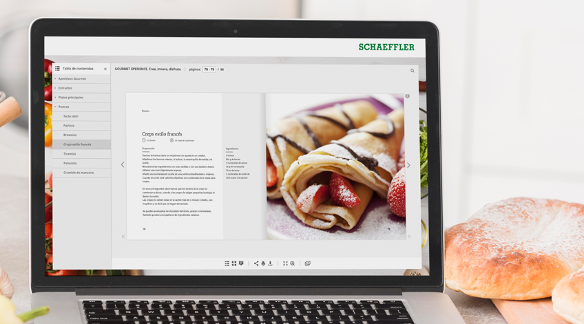 Schaeffler quería felicitar a sus trabajadores con un original libro de cocina, aprovechando la bonita tradición de la rosa y el libro de Sant Jordi. Nosotros nos encargamos de ello. El resultado fue un precioso libro de recetas en 2 versiones: impreso y digital.