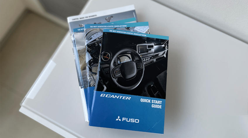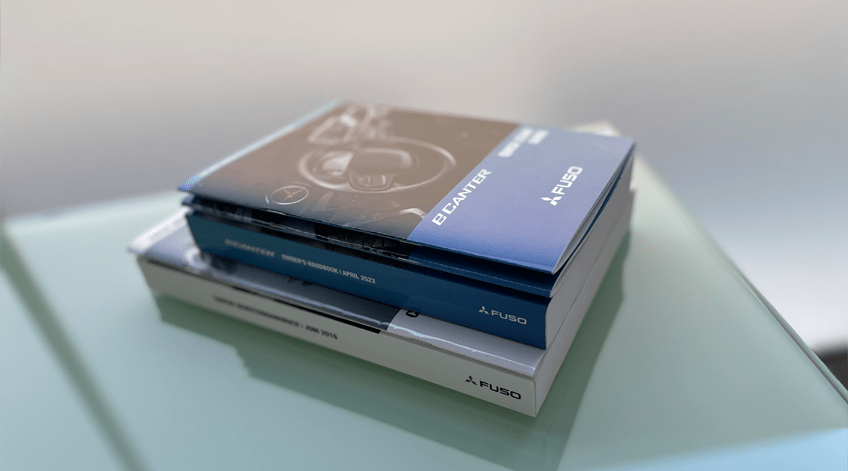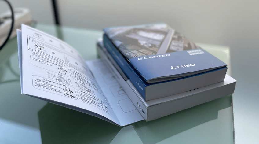 Imprimimos los manuales de los FUSO Canter y e-Canter en más de 20 idiomas. Unos vehículos con chasis variable y con distancias entre ejes diferentes. Los manuales, de unas 500 páginas, se entregan en pack junto a los Services Booklets, las Quick Reference guides, los dípticos DPF y anexos. Un servicio completo de gestión y producción que tiene como objetivo cumplir con los timings de entrega y optimizar la producción y manipulación de este conjunto de materiales.