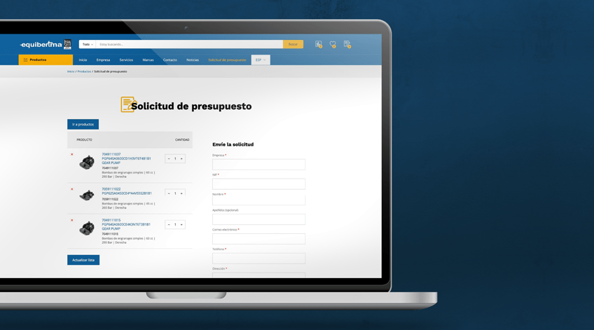 Con funcionalidades cercanas al e-commerce para poder realizar solicitudes de presupuesto sobre productos de forma individualizada.